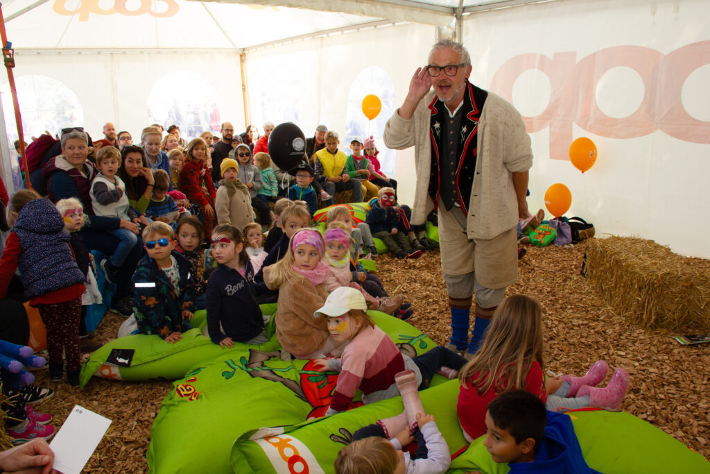 Während Papa Moll immer wieder auf dem Festgelände anzutreffen ist, findet auf der Bühne ein spezielles Programm mit dem tollpatschigen Familienvater statt.